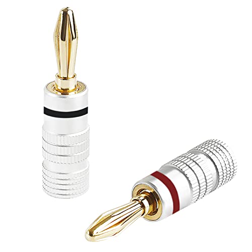 Easy to use: unscrew the jacket to reveal the core of the banana plug. Loosen the screws and insert the speaker wire into the core of the banana plug. Tighten the screws to secure the speaker wire to the core of the banana plug. Replace the jacket over the core and connect.