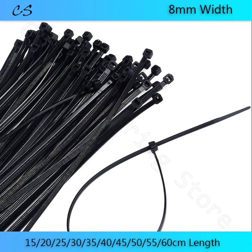 10pcs Black Nylon Strap Cable Ties 15/20/25/30/35/40/45/50/55/60cm Length 8mm Width Self-locking Plastic Nylon Tie Wire