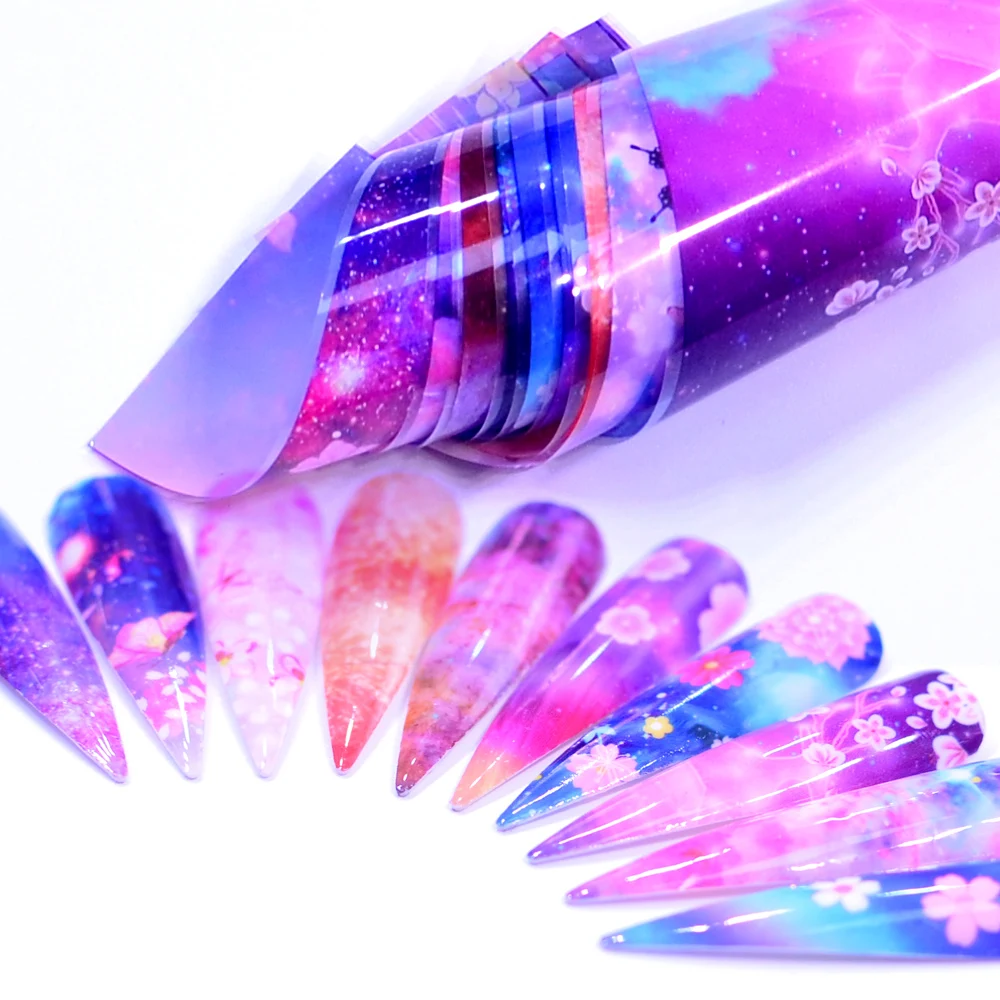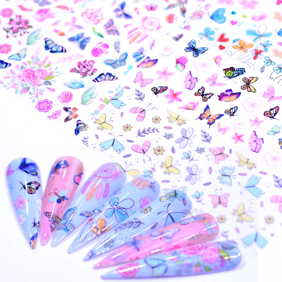 10PCS Butterfly Nail Foils Set Colorful Flowers Transfer Sticker Sliders Decal Adhesive Manicure Nail art Decoration Wrap