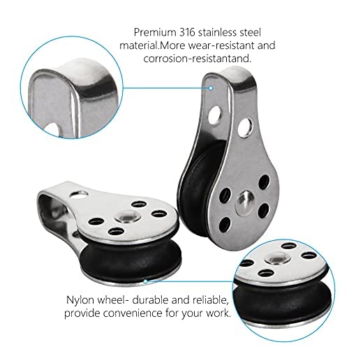 La singola puleggia è facile da installare, adatta a vele, canoe, fabbriche, costruzione, trasporto, estrazione mineraria, case, garage, caricamento della macchina, tende, stendibiancheria, sistemi di puleggia per cani, ecc.