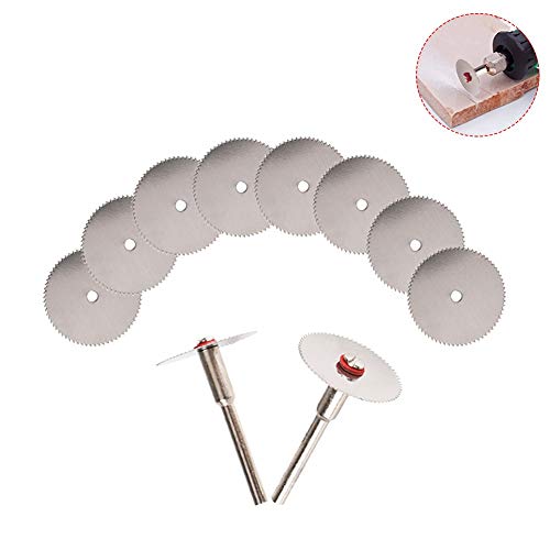 10pcs Mini Lama di Sega Circolare Rotante Disco e mandrino utensile HSS Forma for Dremel taglierina del Metallo Power Tool Set di Legno da Taglio Dischi Drill (Taglia: 32 mm)