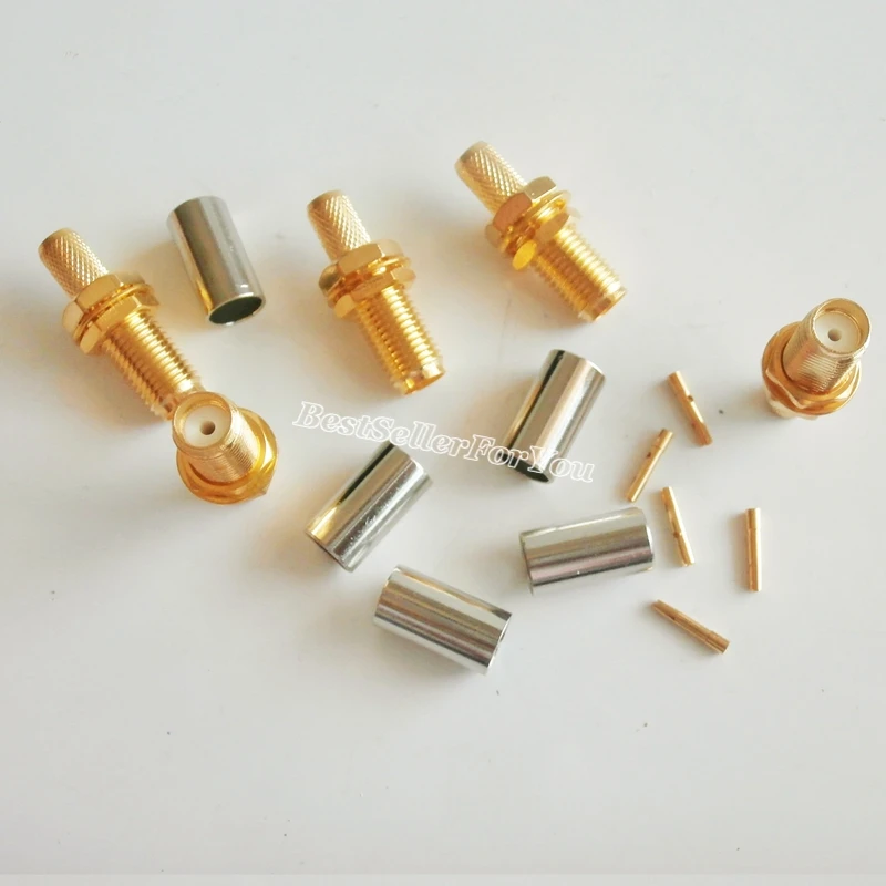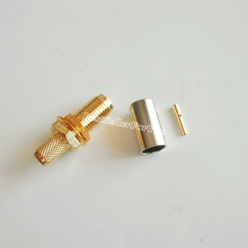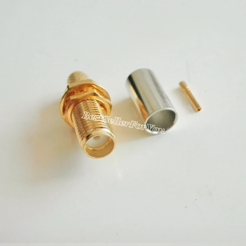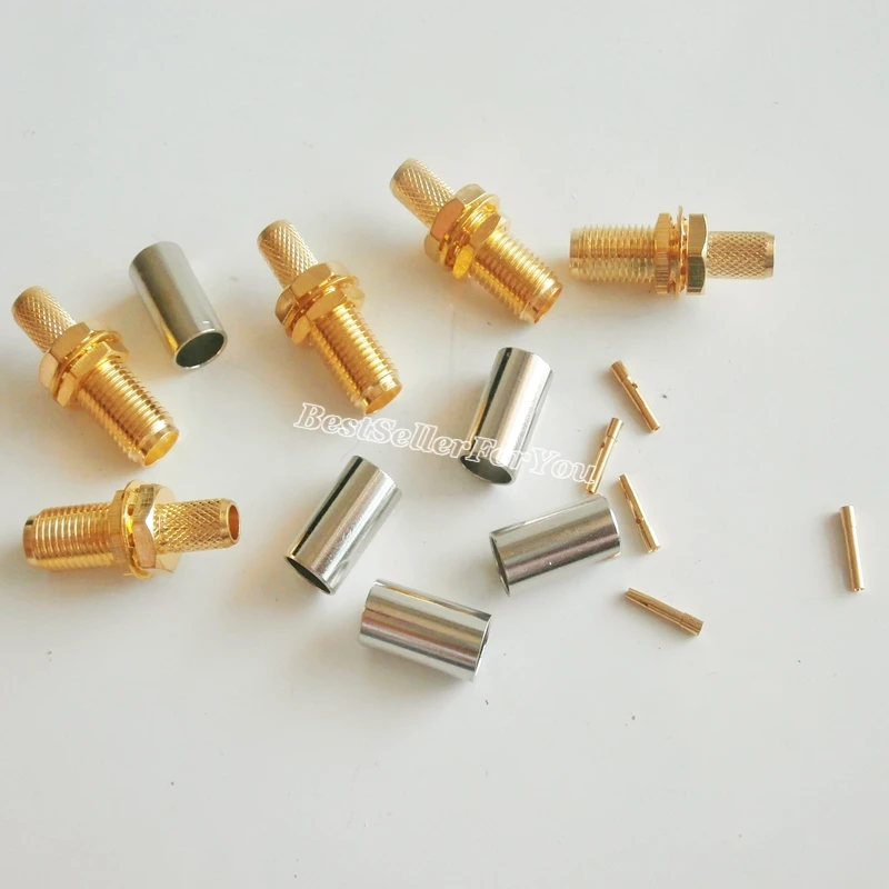 10Pcs SMA connector female jack bulkhead crimp for RG58 LMR195 RG142 Cable goldplated PTFE