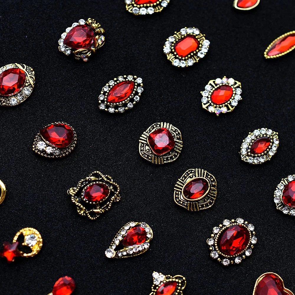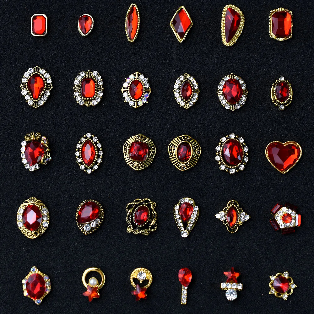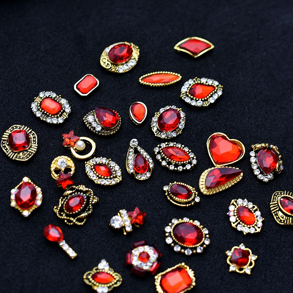 10pcs Gold 3D Red Gems Crystal Bright Nail Rhinestone Alloy Nail Art Decorations Glitter DIY Nails Accessories Supplies TOP