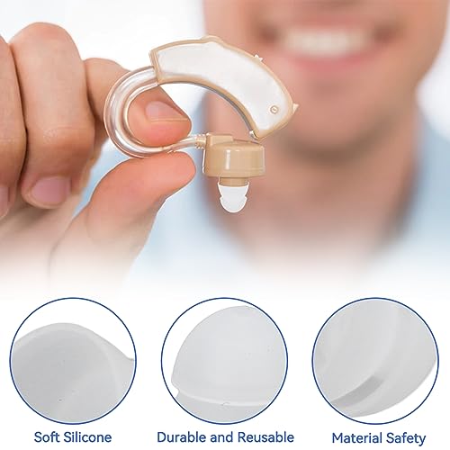 【Materiale in silicone】 Gli auricolari degli apparecchi acustici sono realizzati in morbido materiale in silicone, quindi non sentirai disagio alle orecchie dopo averli indossati tutto il giorno.