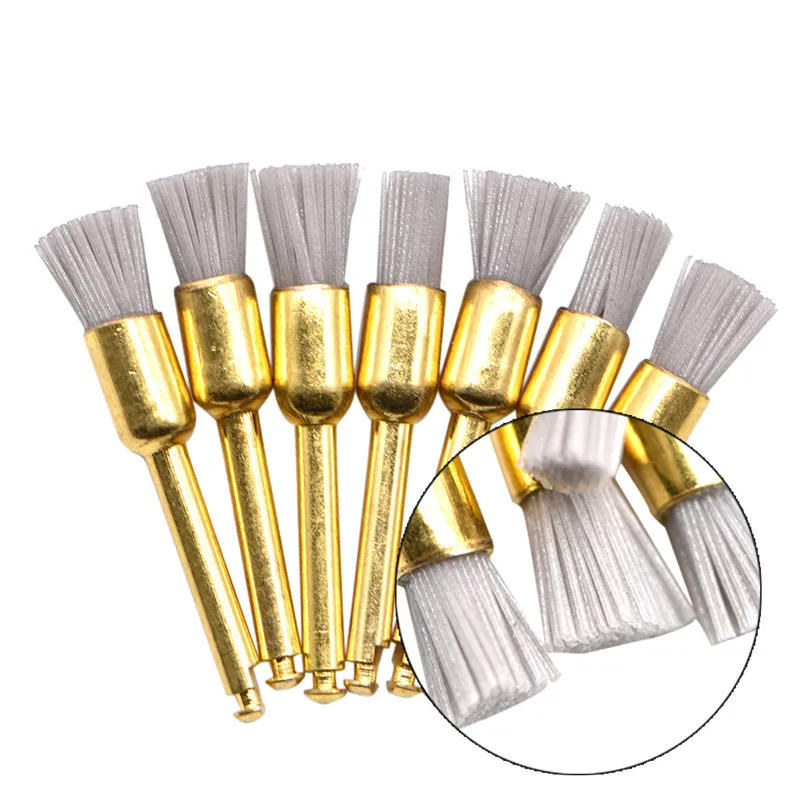 10Pcs Dental Polishing Brush Alumina Material Latch Flat Sharp Bowl Teeth Polisher Prophy Brushes for Contra Angle Handpiece
