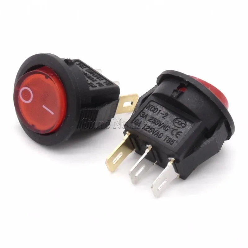 10Pcs 16mm Diameter Small Round Red Light 3 Pin 6A/125V 3A/250V AC SPST ON-OFF Rocker Switch Snap-in