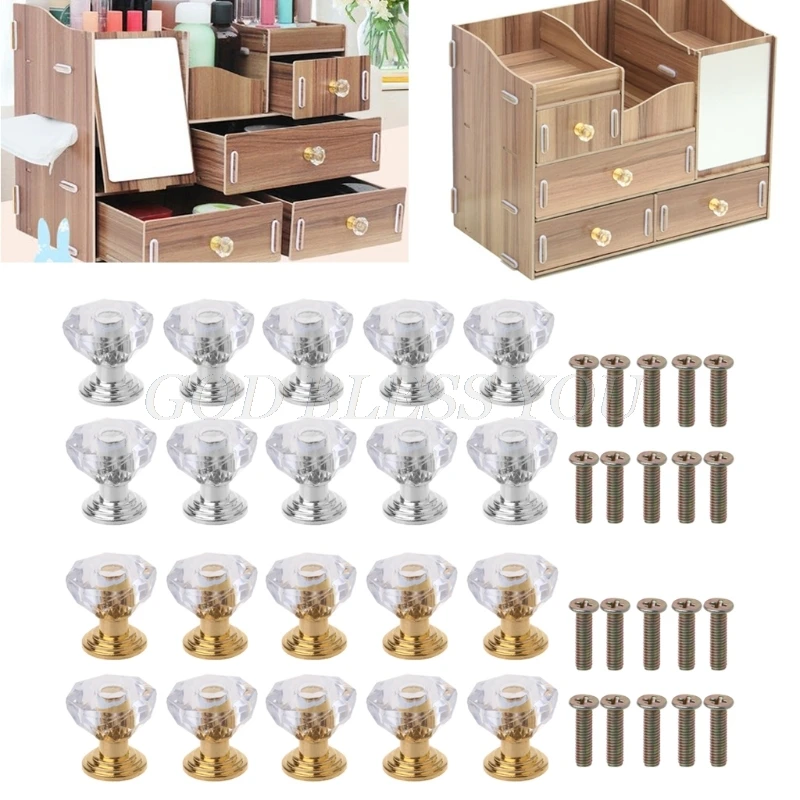 10Pcs Diamond Shape Crystal Glass Cabinet Knob Drawer Pull Handle For Jewelry Box Drop Shipping