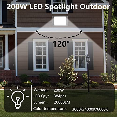 10pcs 200W Dimmerabile Faretto LED da Esterno, 20000LM LED Proiettore Faro, Impermeabile IP66 Luce LED, Fari LED Lampada Dimmerazione Tramite Interruttore a Parete, per Giardino Corridoio Magazzino
