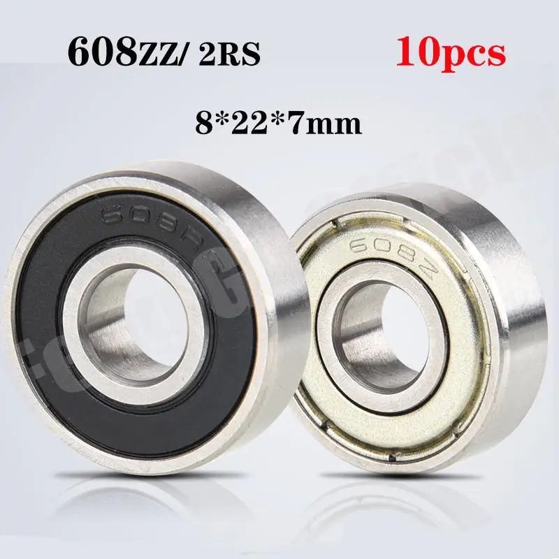 10pcs Double Shielded Miniature High-carbon Steel Single Row 608ZZ 608RS ABEC-1 Deep Groove Ball Bearing 8*22*7 8x22x7 MM 608 ZZ