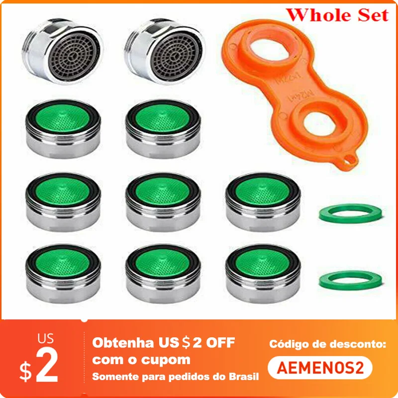 10Pcs Faucet Tap Water Saving Aerator Copper with Faucet Aerator Wrench Jet Regulators Filter Part for Bathroom Kitchen Tools