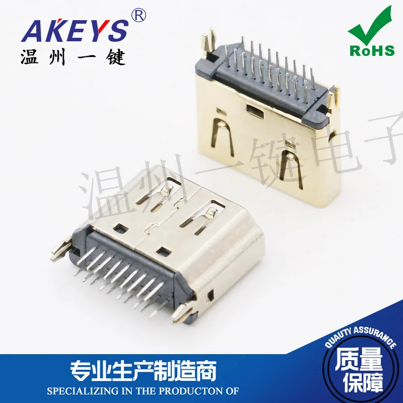 10pcs HDMI A type female 180 degree copper gold HDMI direct plug 180 degree HD socket connector