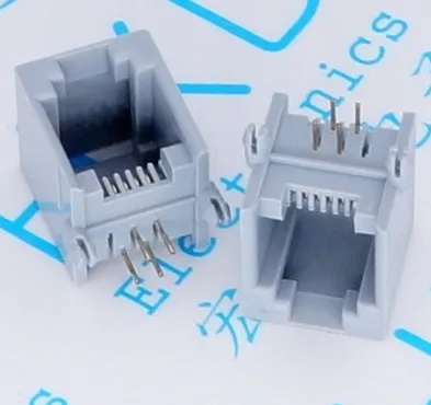 10PCS RJ11 6P4C Female PCB Mount Modular Plug/Jack Network Connector 4P Grey