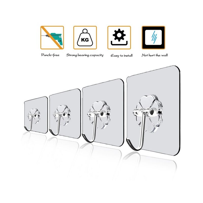 10Pcs ganci a parete bagno trasparente impermeabile resistente all&39olio ganci autoadesivi gancio appeso senza cuciture riutilizzabile per cucina,10pcs as picture,CHINA