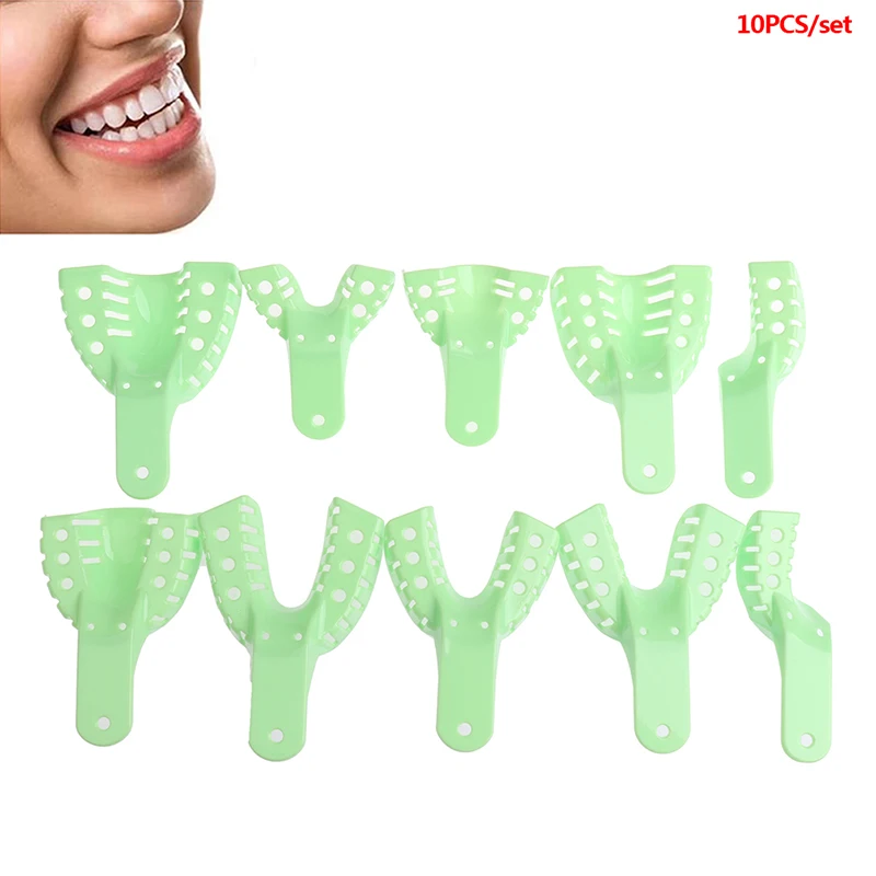 10Pcs Green Dental Impression Trays Plastic Dental Mouthguard Trays Oral Care