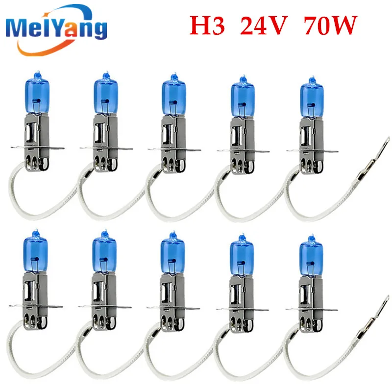 10pcs H3 Car Halogen Lamps 24V 70W Super White 6000K Xenon Dark Blue Bulbs Auto HeadLights Quartz Glass Car Light Source parking