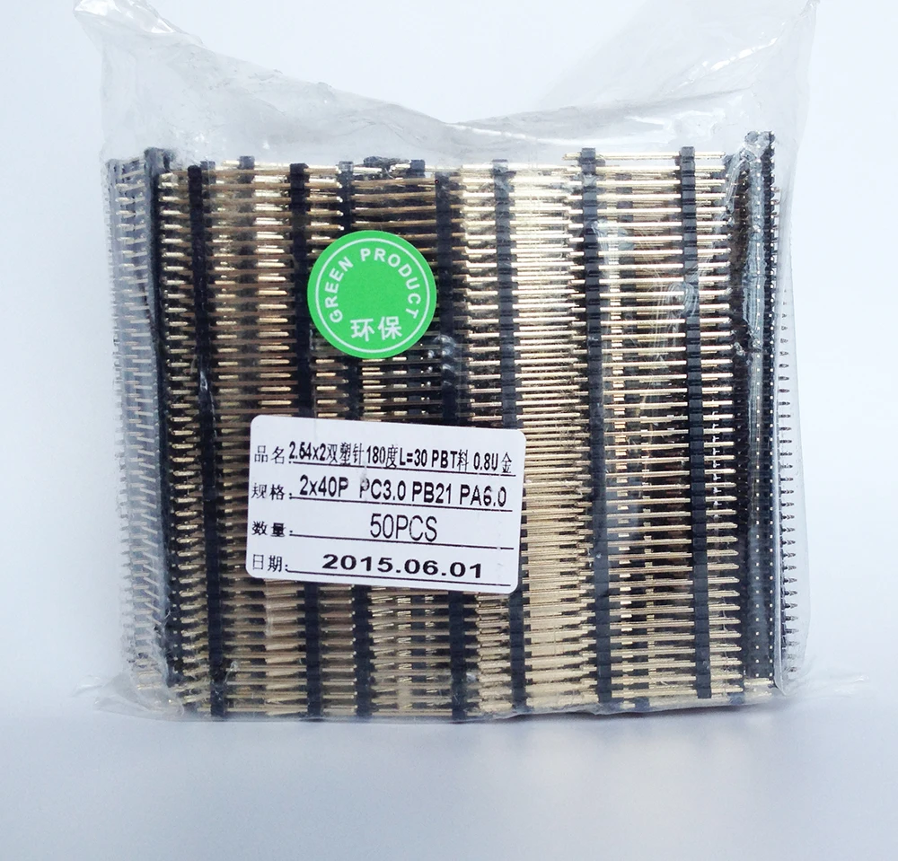 10Pcs 2.54mm Pin Header Straight 2X40p L15/17/19/21/23/25/27/30.3/35/40mm Board spacer Double row double plastic Gold-plated
