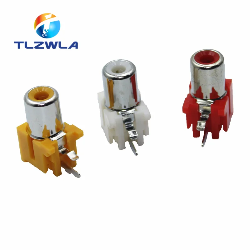 10Pcs AV-8.4-5 2x Holes 2Pins RCA Sockets 90Degree Audio Video Connecctors Jacks yellow white red