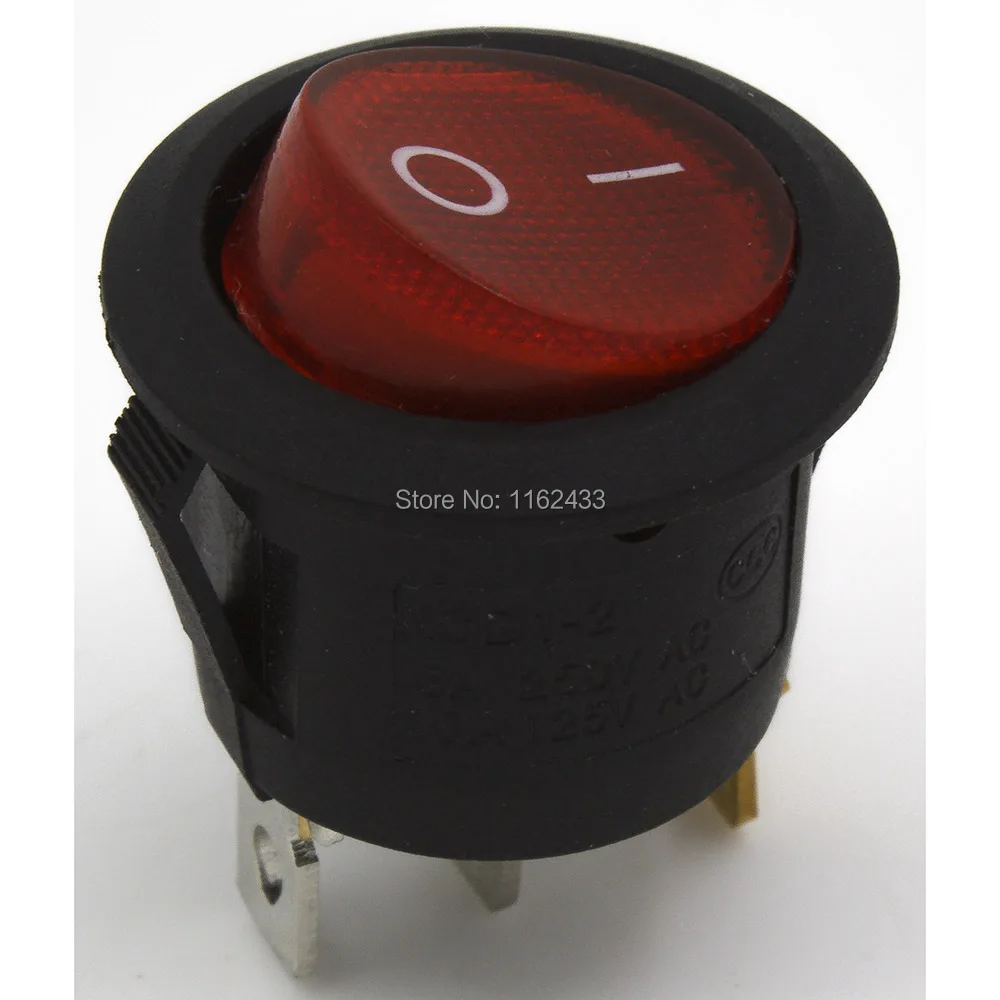 10pcs / lot KCD1-102N-5 perforate diameter 20 mm 3 pin ON - OFF round rocker switch with light KCD1-105N 220V 12V