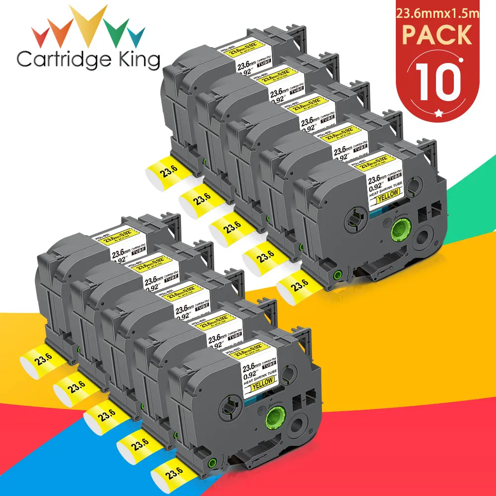 10pcs hse Label For Brother HSe 651 HSe-651 Heat Shrink Tube Tape HSe651 Black on Yellow 23.6mm For Brother P touch Label Maker