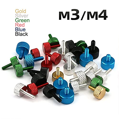 10pcs M3/M4 lega di alluminio Bullone a testa piatta zigrinata Vite a mano, Rosso, M3X6