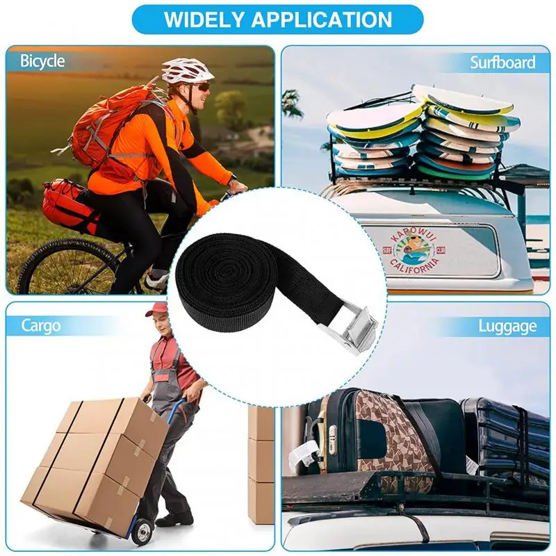10PCS 3 Meters Binding Belt Zinc Alloy Press Buckle Car Luggage Rack Cargo Fixing Belt Tension Rope Nylon Cable Tie Black