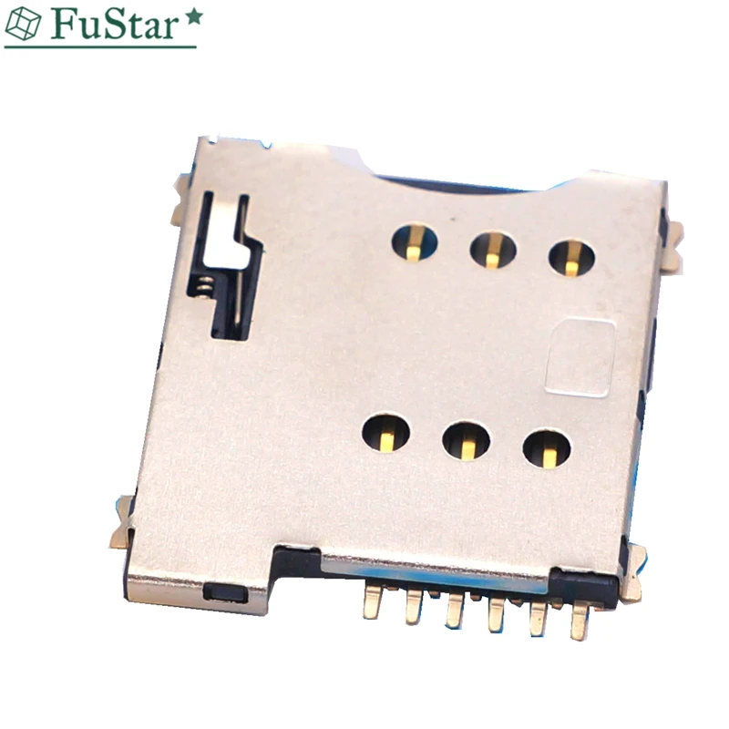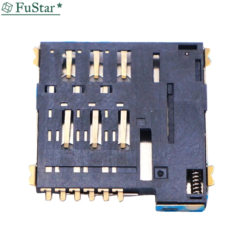 10pcs SIM card slot Micro SIM 6P 6-Pin card Holder adapter Connect use for phone self push Type PUSH Mobile Card Ultra Thin 1.3