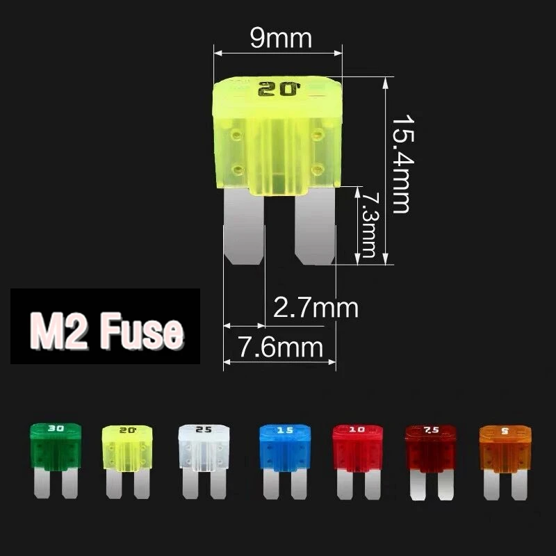 10pcs 5A 7.5A 10A 20A 25A 30A AMP Micro 2 Long Leg Fuse 9mmx15.5mm Mini M2 Long Foot Automobile Fuse Insert