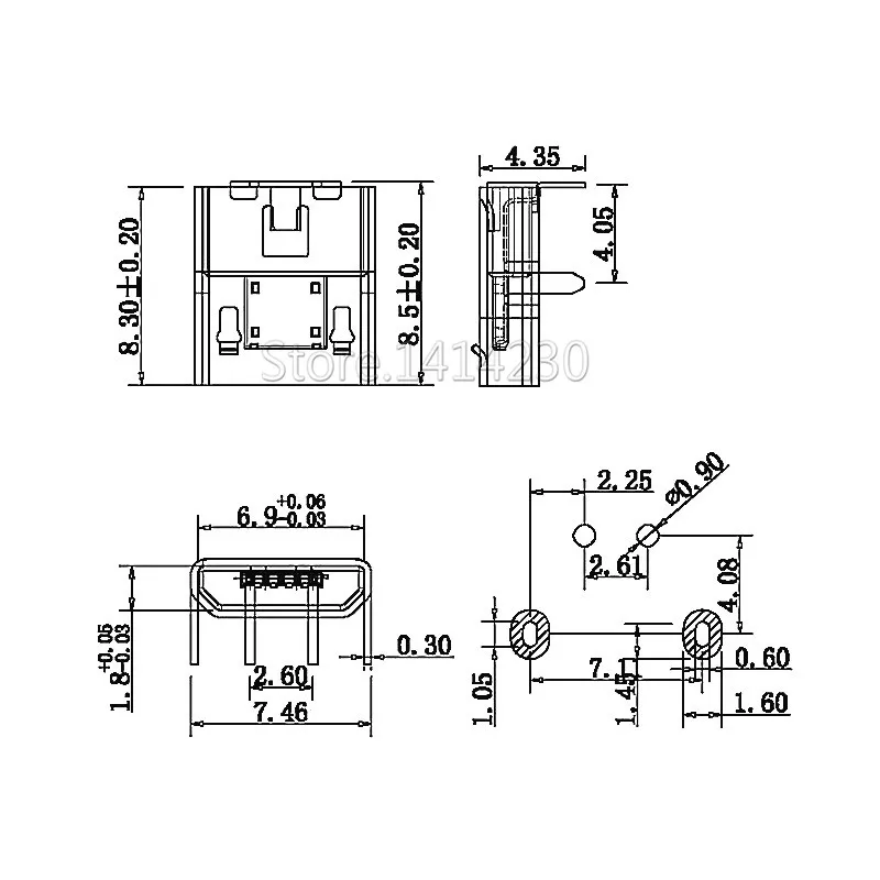 10PCS Micro usb 2pin dip7.2 micro-usb Female Socket BF Type B USB connector