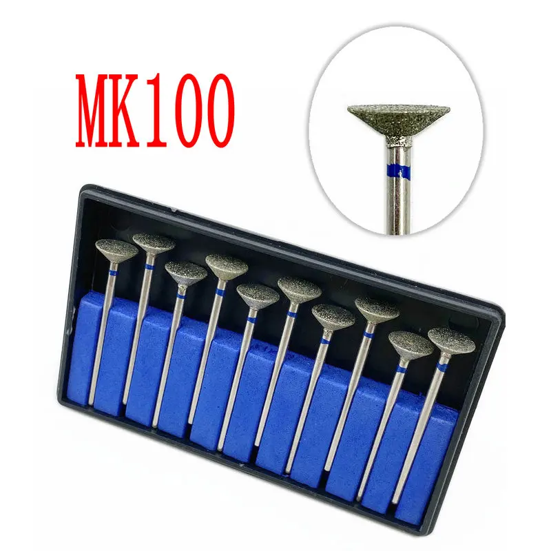 10pcs Type MK100 Dental Part Electroplated Diamond Point Polisher Dental HP Diamond Burs HP Rotary Bur Set Dental Lab