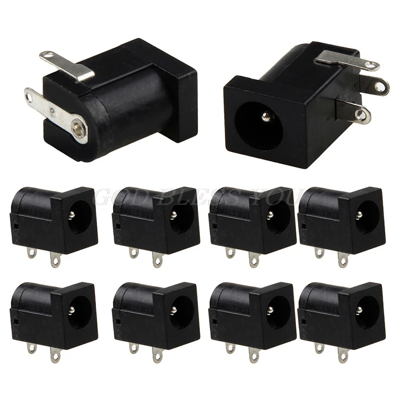 10Pcs PCB Mount 5.5 x 2.1 mm Female DC Power Jack Plug Socket Connector Black Drop Shipping