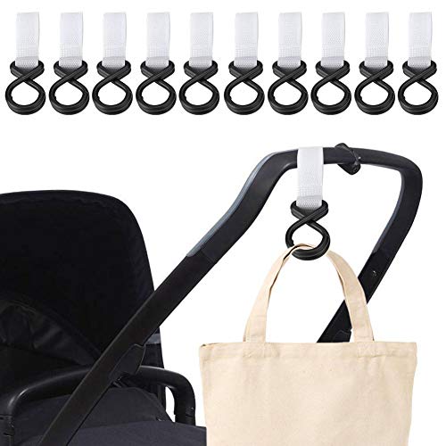 10Pcs Passeggino Gancio Mommy Ganci Passeggino Ganci Clip Colorato multiuso Hanger per accessorio Baby(bianca)