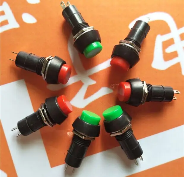 10pcs PBS-11B 2PIN Plastic 12mm Push Button Momentary Switch l3A 150V Red green random sent by default