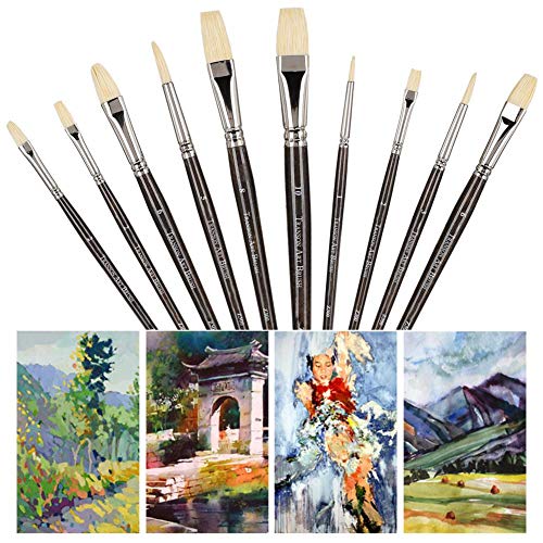 10Pcs Set di pennelli per pittura a olio, Pennello per pittura per capelli con collo di maiale marrone con supporto UV marrone Studenti Artisti Forniture artistiche per Gouache Acquerello Pittura a ol