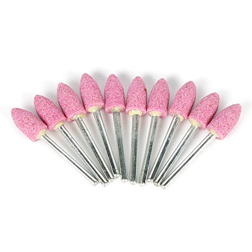 10Pcs Pietra abrasiva montata per accessori Dremel Testa della mola per mola per utensili rotanti Dremel Forma di proiettile Rosa, rosa