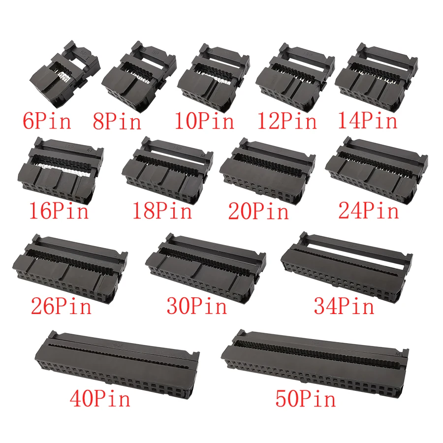 10Pcs FC 2.54mm Pitch IDC Socket Double Row Female Header Connector 6P/8/10/12/14/16/18/20/24/26/30/34/40/50 Pin for 2.54mm Wire