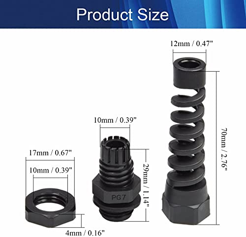 10Pcs 3-6.5mm Dia Filo Plastica Impermeabile PG7, Giunti Impermeabili Pressacavo Connettore Regolabile Nero