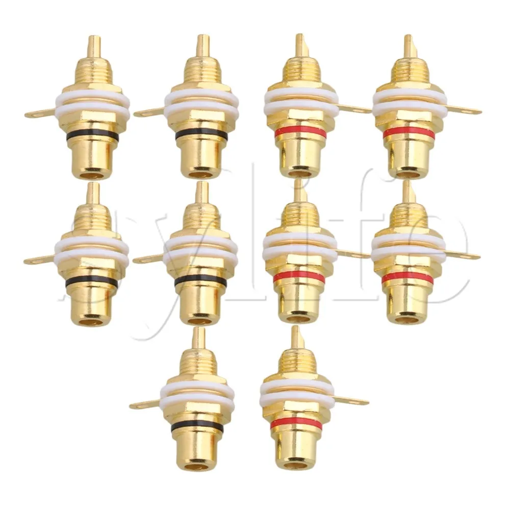10pcs Gold Plated RCA Jack Panel Mount Chassis Socket 3/8" Mounting Hole