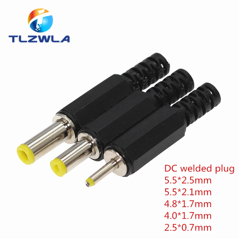 10pcs DC power adapter plug 5.5*2.1mm DC plug connector Welding line Male plug 5.5x2.5 4.8 1.7 1.35 0.7mm