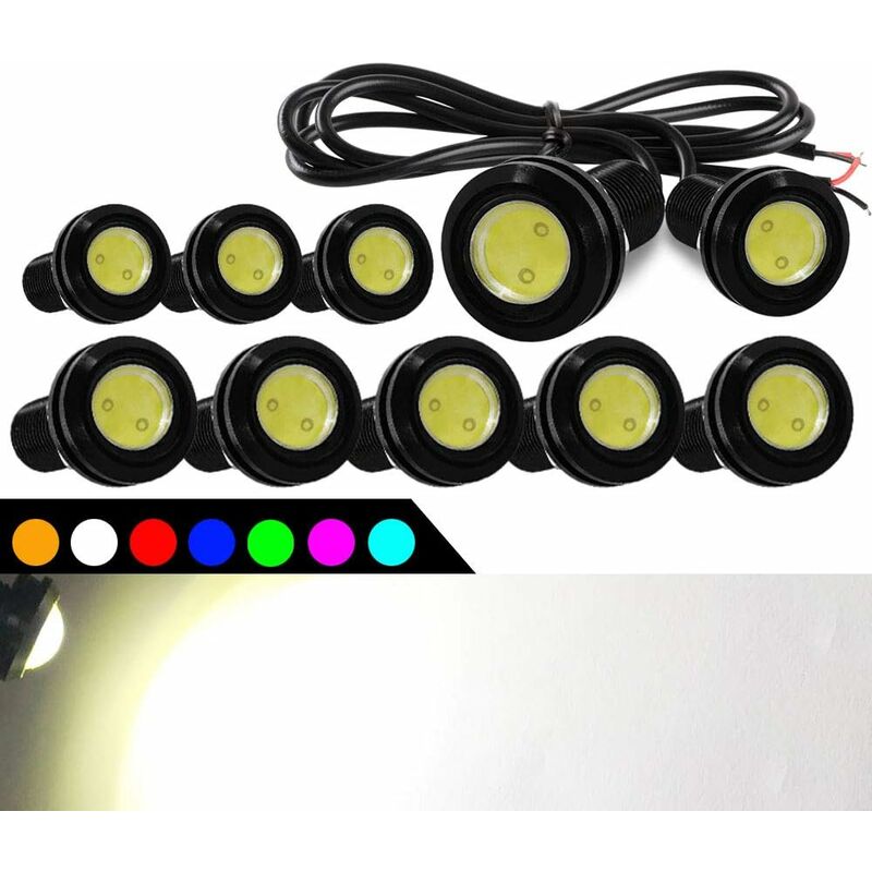 FUNZIONE: maggiore durata del LED fino a 10.000 ore. Design ultra sottile. Design a filo lungo. Design impermeabile, antipolvere e antiurto, resistente, desiderabile e adatto alla maggior parte dei veicoli. TAGLIO: la nostra luce a LED può essere sostituita con una lampadina per auto, utilizzata come indicatore di direzione, luci di retromarcia, luce di svolta, luce di stop, parcheggio luce, fanale posteriore o luce di retromarcia (luce di retromarcia congiunta), (fendinebbia) luce di marcia diurna (giunto ACC). INSTALLAZIONE: facile da installare e può essere installato su qualsiasi superficie del veicolo praticando dei fori, Robusto, fai-da-te molto facile. CONFEZIONE INCLUSA: 10 pezzi di luci di marcia diurna bianche Eagle Eyes da 18 mm