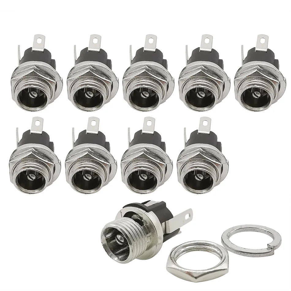 10Pcs 5.5 x 2.1mm DC Power Jack Panel Mount Terminal 3 Pin 5.5 * 2.1mm DC Female Socket Supply Electrical DC Jack Connector