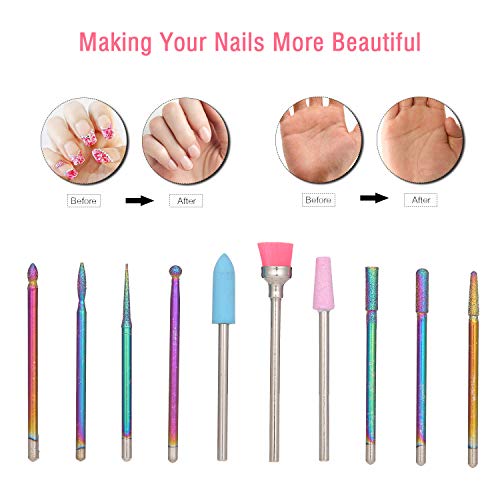 【Nuovo set colorato di punte per trapano per unghie】 Sono inclusi 10 pezzi di punte per unghie con funzioni diverse, che soddisfano le tue diverse esigenze di manicure e pedicure.L'aspetto colorato ti offre esperienze e sensazioni diverse per nail art. Perfetto per la preparazione fai-da-te di nail art o per la pelle morta e rimozione del gel per unghie.