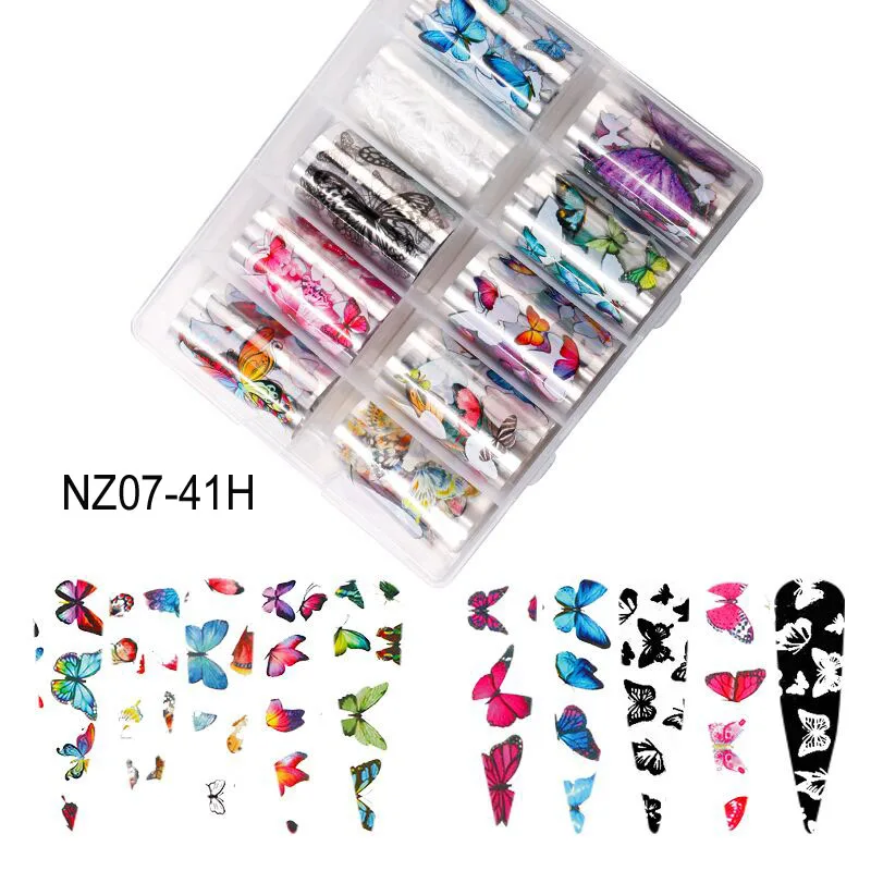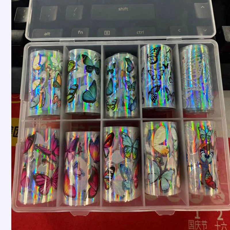 10pcs 1 Box Holo /Rainbow Butterfly Nail Foil Lace Butterfly Design Nail Foil Sticker Laser Starry Sky Transfer Paper Decals,YT