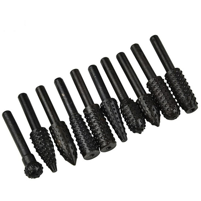 Specifiche: Materiale: acciaio al carbonio 45# Colore: nero Lunghezza totale: ca. 58 mm Diametro superiore: ca. 12 mm Lunghezza superiore: ca. 25 mm Lunghezza gambo: ca. 29 mm Diametro gambo: ca. 1/4 " (6,3 mm) RPM massimo: 20.000 Peso dell'imballaggio: 230 g Dimensioni della confezione: 130 mm*100 mm*18 mm Note: Si prega di consentire una deviazione di misurazione di 1-3 cm dovuta alla misurazione manuale. Elenco dei pacchetti: 1 * Set di frese rotanti (10 pezzi/set)