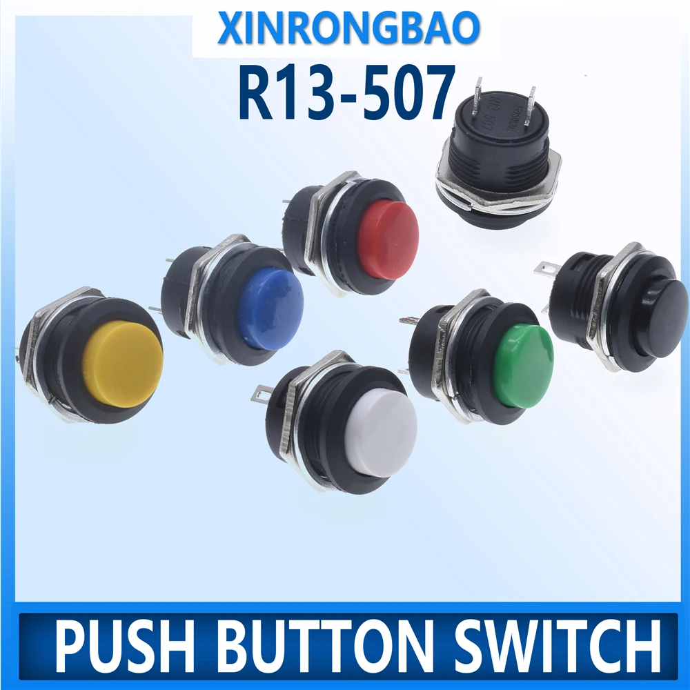 10PCS 16mm Reset Momentary Button Switches 6A/125VAC 3A/250VAC Round Button Jog Switch R13-507 Black Red Green White Blue Yellow