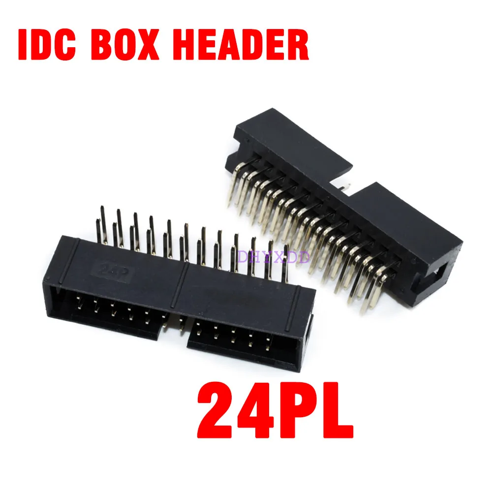 10Pcs DC3 2x12 Pin 24 Pin 2.54mm ISP Right Angle Male Double-Spaced Pin Male IDC JTAG Socket Box Header Connector