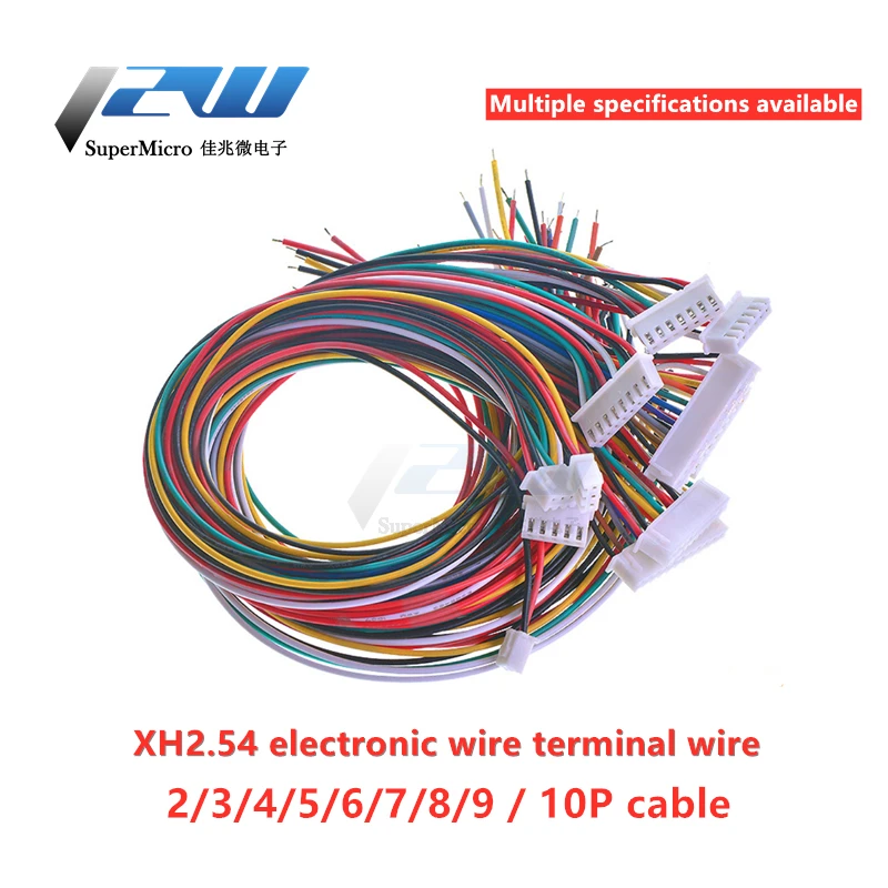 10pcs XH2.54 XH 2.54mm single head tinned cable connector 2/3/4/5/6/7/8/9/10 pin female plug 30cm cable length 26AWG