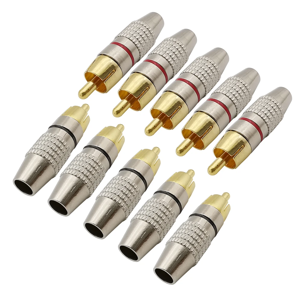 10Pcs RCA Male Plug Non Solder AV Audio Video Lotus Type RCA Plugs Connector for Audio Cable Plug Video CCTV Camera Black+Red