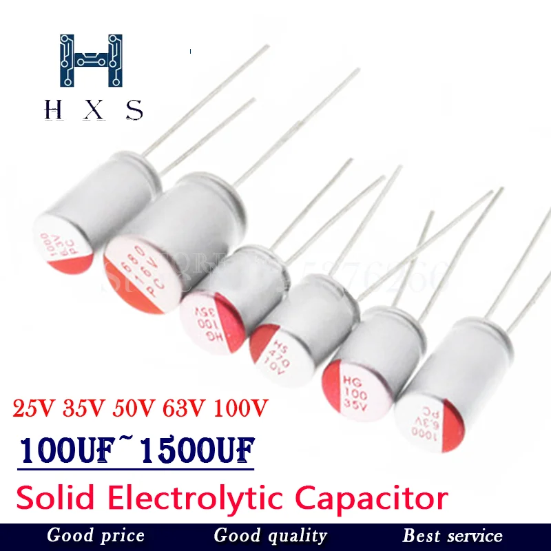 10Pcs DIP Solid Electrolytic Capacitor 25V 35V 50V 63V 100V 10UF 47UF 100UF 220UF 270UF 330UF 470UF 560UF 680UF 820UF 1000UF