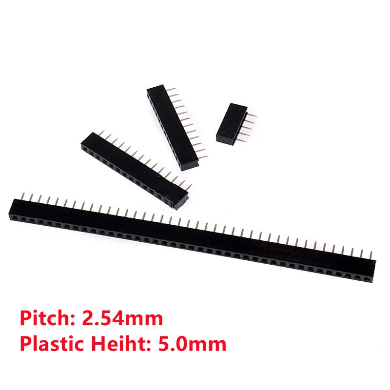 10pcs 2.54mm Spacing Single Row Female 1x5/6/10/40p Plastic Height 5.0mm Straight Plug Short Body Female Seat Pin Socket