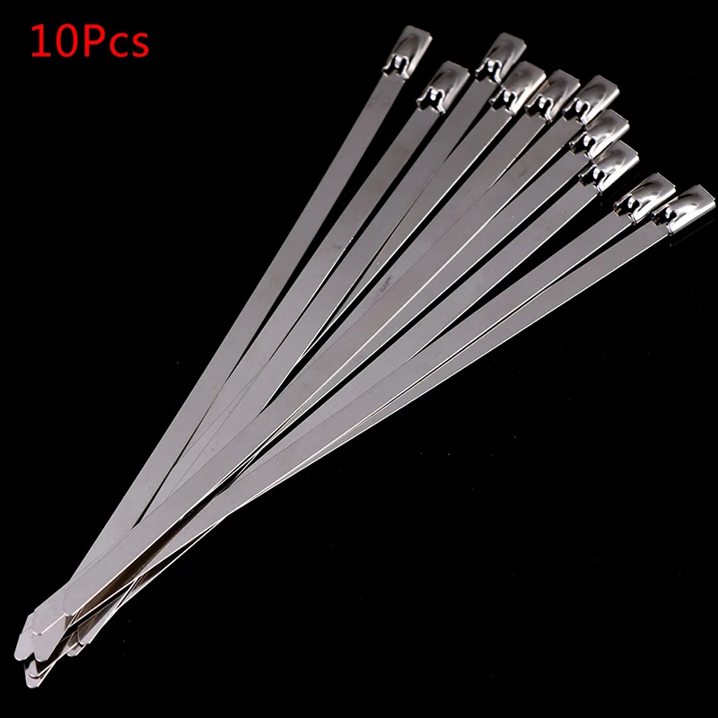 10Pcs Stainless Steel Cable Ties Cable Multi-Purpose Exhaust Wrap Locking Ties